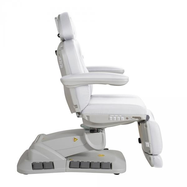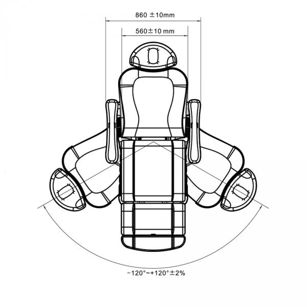 Pentru confortul maxim al clientilor, patul dispune de cotiere rabatabile si sezut rotativ. Aceste functii faciliteaza accesul la pat si ocuparea rapida a pozitiei de tratament, reducand astfel solicitarea mecanica asupra cotierei si tapiteriei. Sezutul, ce se poate roti la ±120°, ofera posibilitatea schimbarii perspectivei asupra fetei clientului in timpul tratamentului, fara ca specialistul sa isi paraseasca zona de lucru organizata.